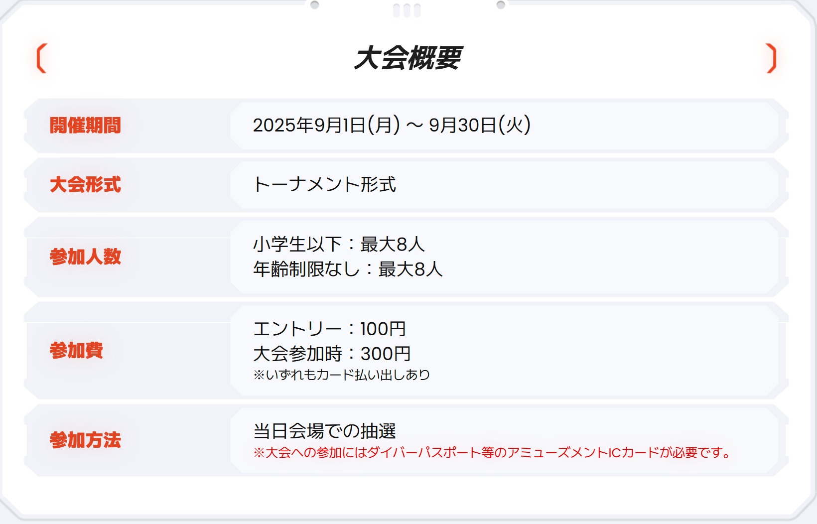 大会に当選すると参加賞として【大会参加記念カード】を入手することが出来ます。