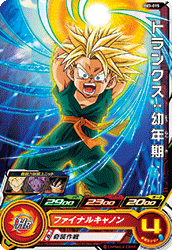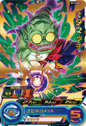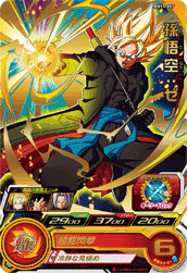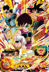 - 戦闘力バトル終了時、自分チームの戦闘力が8000以上の時、自分チームのHエナジー+1。さらに、自分チームに「孫悟空」か「ベジータ」がいると、効果がアップする。[毎回]