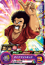 - アタッカーにすると、そのラウンドの自分のガードが「敵アタッカーの人数×1000」アップする。さらに、仲間アタッカーに「ミスター・サタン」がいる場合、自分が気絶しなくなり、「ミスター・サタン」が敵に狙われなくなる。[毎回]