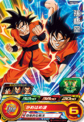 - 2ラウンド目以降アタッカーにすると、自分チームの攻撃時に究極元気玉で敵にダメージを与えることができる。仲間が多いほどダメージアップ。さらに、大成功すると、敵チームのHエナジーを-2。[1回限り][究極元気玉はチームで1枚のみ発動可能]