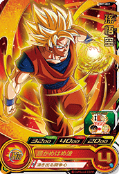 - 2ラウンド目以降アタッカーにすると、 自分チームの攻撃時に超エナジーモードに突入。 気弾で敵に大ダメージを与える。 自分チームのHエナジーが多いほどダメージアップ。 大成功すると、攻撃した敵のガードを永続で-2000。[1回限り]