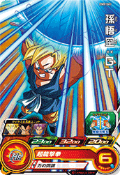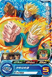 - 2ラウンド目以降アタッカーにすると、自分チームの攻撃時に究極元気玉で敵にダメージを与えることができる。仲間が多いほどダメージアップ。さらに、大成功すると、敵チーム全員のチャージインパクトスピードを永続で速くする。[1回限り][究極元気玉はチームで1枚のみ発動可能]