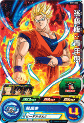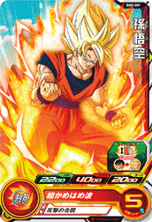 - 2ラウンド目以降アタッカーにすると、 自分チームの攻撃時に超エナジーモードに突入。 気弾で敵に大ダメージを与える。 自分チームのHエナジーが多いほどダメージアップ。 大成功すると敵チームのHエナジー-2。[1回限り]