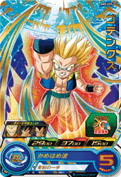 - 2ラウンド目以降アタッカーにすると、自分チームの攻撃時に究極元気玉で敵にダメージを与えることができる。仲間が多いほどダメージアップ。さらに、大成功すると、敵チーム全員に気力ダメージを与える。[1回限り][究極元気玉はチームで1枚のみ発動可能]