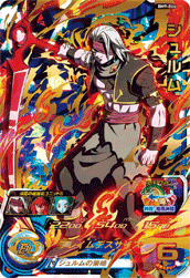 - サポーターにした戦闘力バトル終了時、自分チーム全員の受けるダメージがこのラウンドのみ半減する。敵チームにパワーが12000以上の敵がいると、このラウンドのみ敵全員のパワーが-30000。[1回限り]