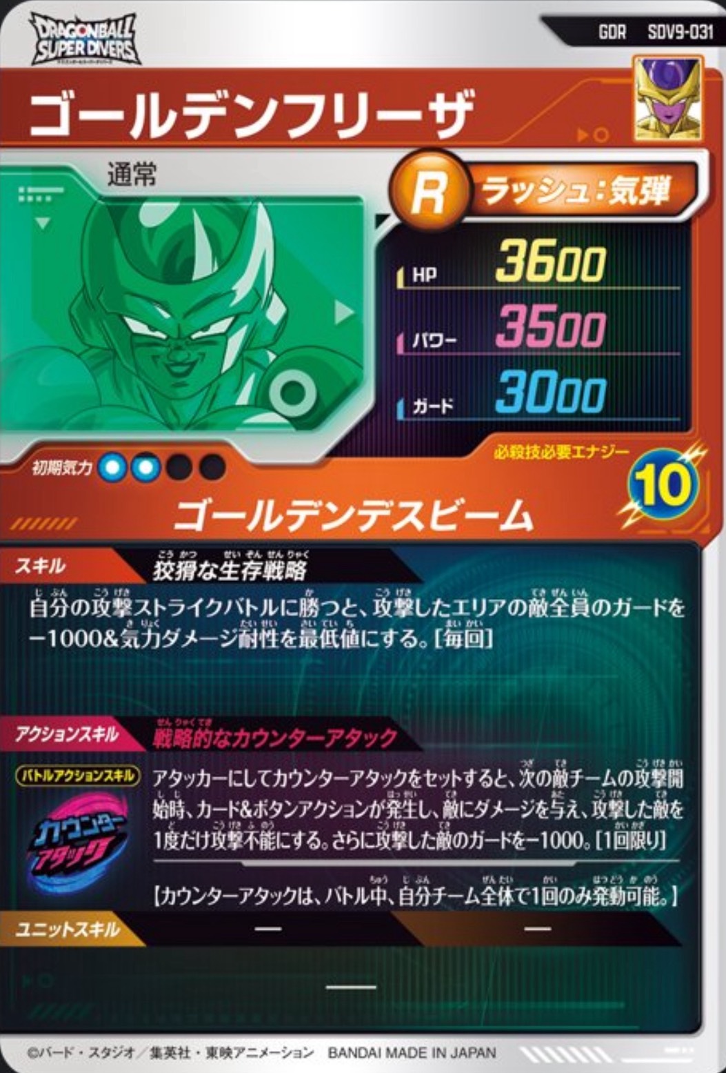 ラウンド終了時、カードアクションに成功すると、超サイヤ人4に変身し、パワーを+3500&気力を少し回復する。