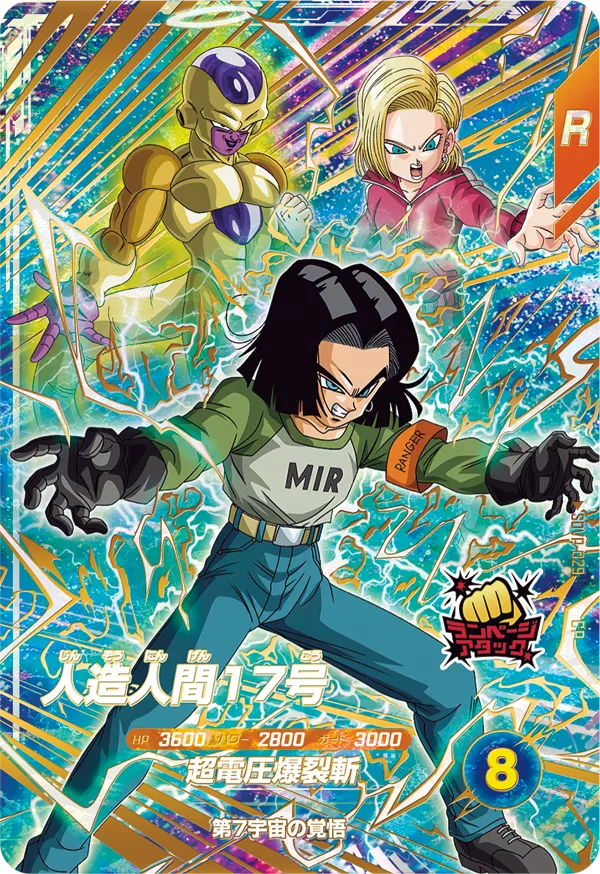 自分の攻撃または防御ストライクバトルに勝つと、自分のパワーを+1000&ガードを+2000。さらに自分チームに「人造人間17号」がいる場合は、自分チームの「人造人間17号」のパワーとガードも同じくアップする。[毎回]